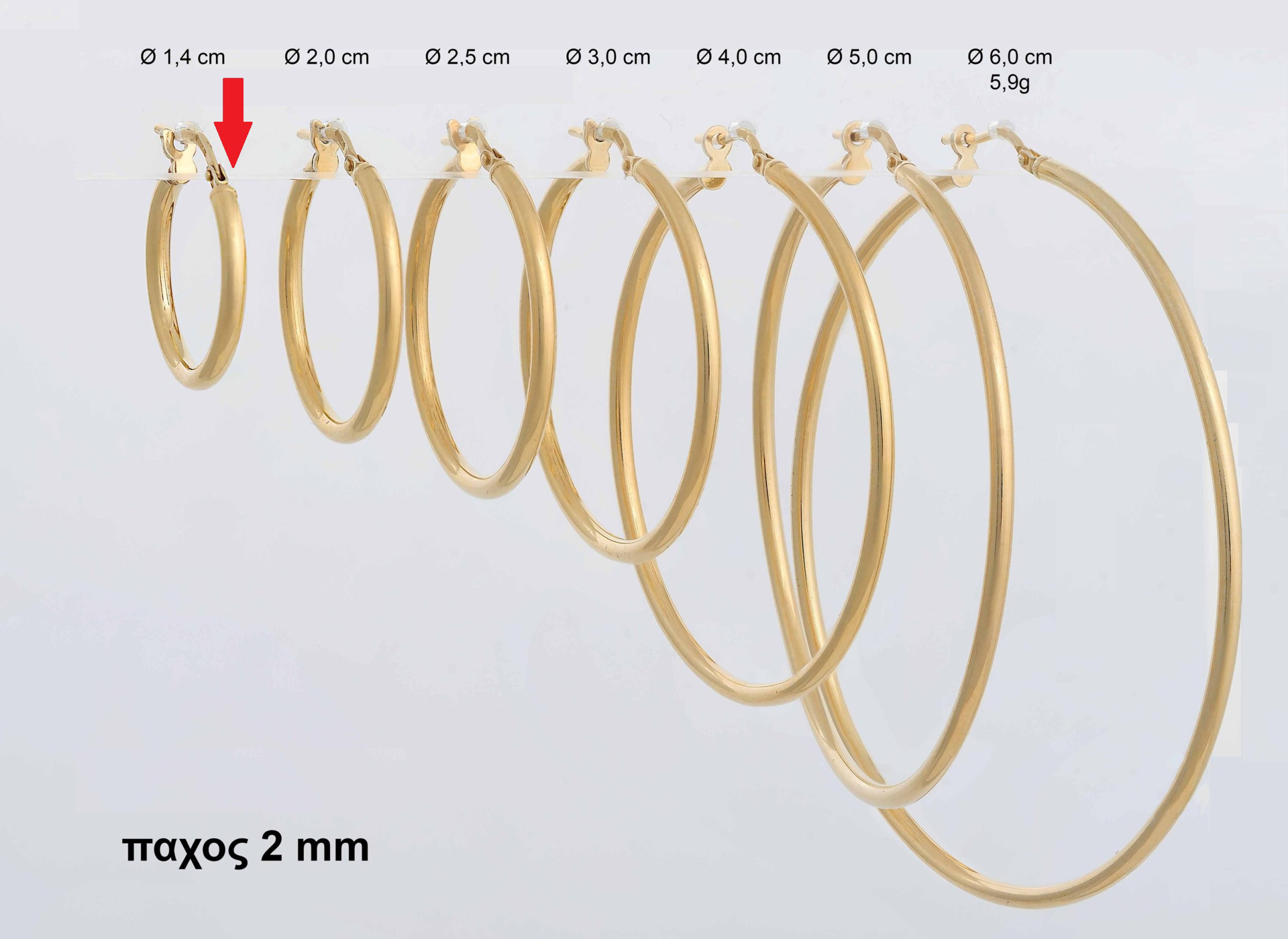Ασημένιοι επίχρυσοι κρίκοι πάχους 2 χιλιοστών και διαμέτρου 14 mm.