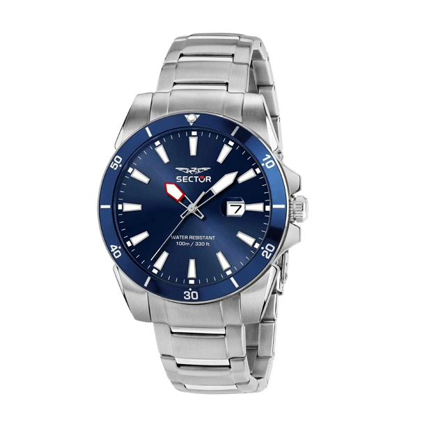 Ανδρικό ωρολόγι SECTOR από τη συλλογή 450 (μοντέλο R3253276012) με μπλέ cadran και ένδειξη ημερομηνίας, 41 mm κάσα και μπρασελέ από ανοξείδωτο ατσάλι. Στεγανοποίηση 10 ΑΤΜ : Κολύμβηση - Θαλάσσια Σπορ.