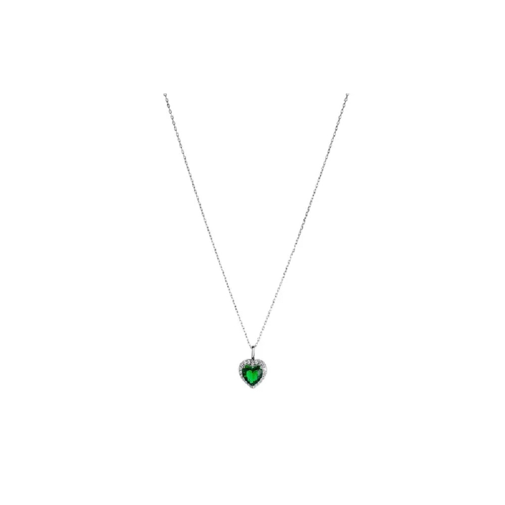 Κολιέ από ασήμι 925 της εταιρίας VOGUE, μια ροζέτα σε σχήμα καρδιάς με λευκά και πράσινα ζιργκόν.