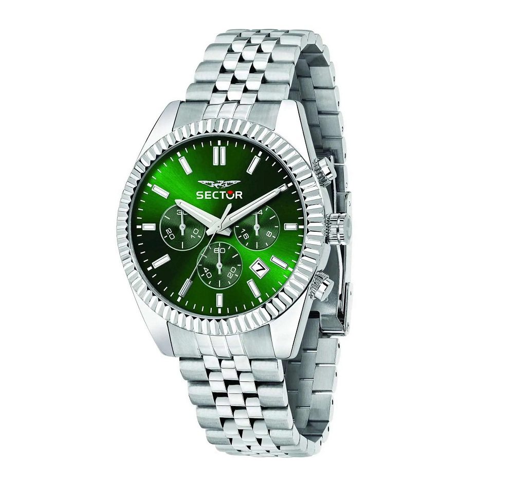Ανδρικό ωρολόγι χρονογράφος SECTOR από τη συλλογή 240, 41 mm κάσα, με μπρασιλέ από ανοξείδωτο ατσαλι και πράσινο cadran.