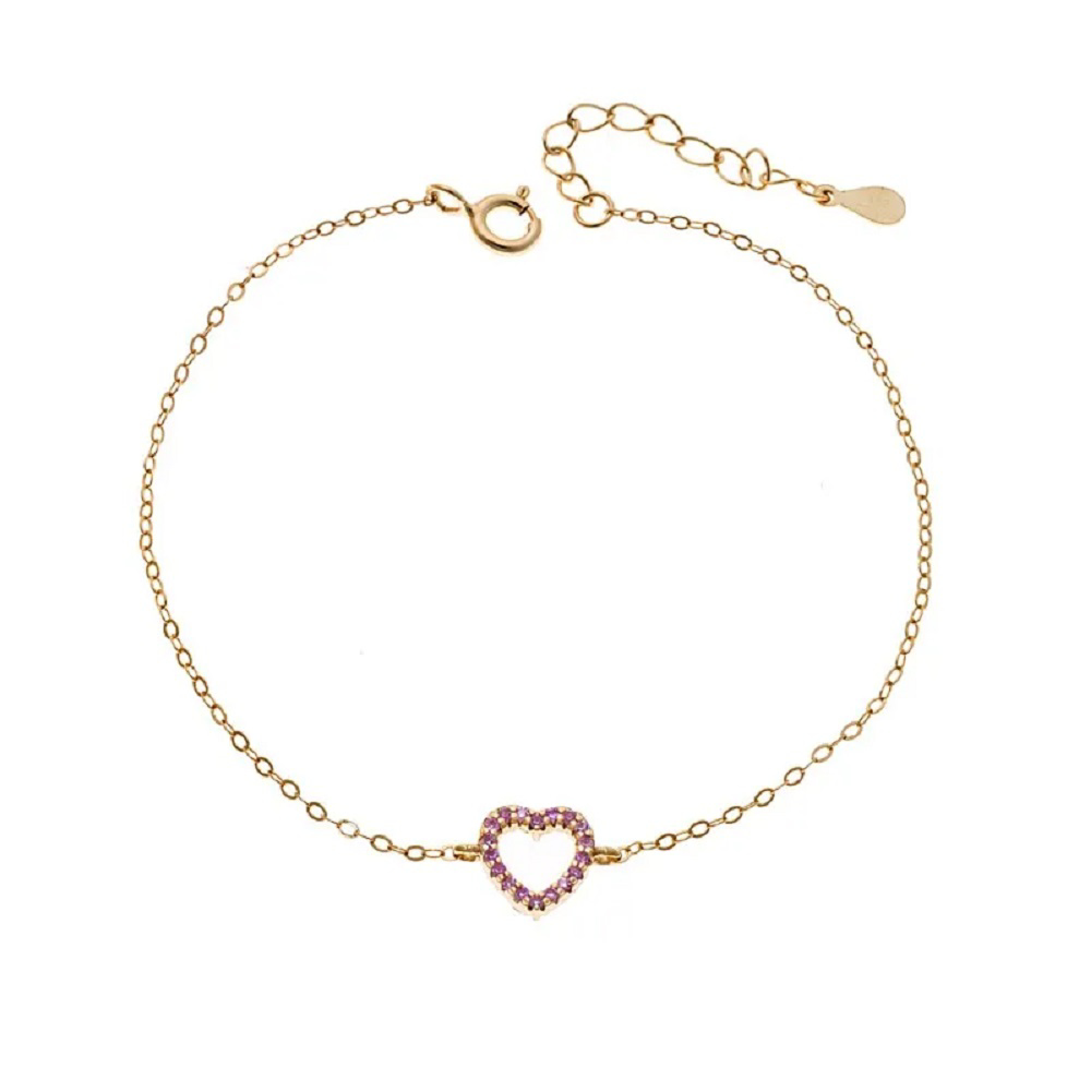 Επίχρυσο βραχιόλι ασήμι 925, καρδια 2 όψεων με άσπρα και χρωματιστά ζιργκόν