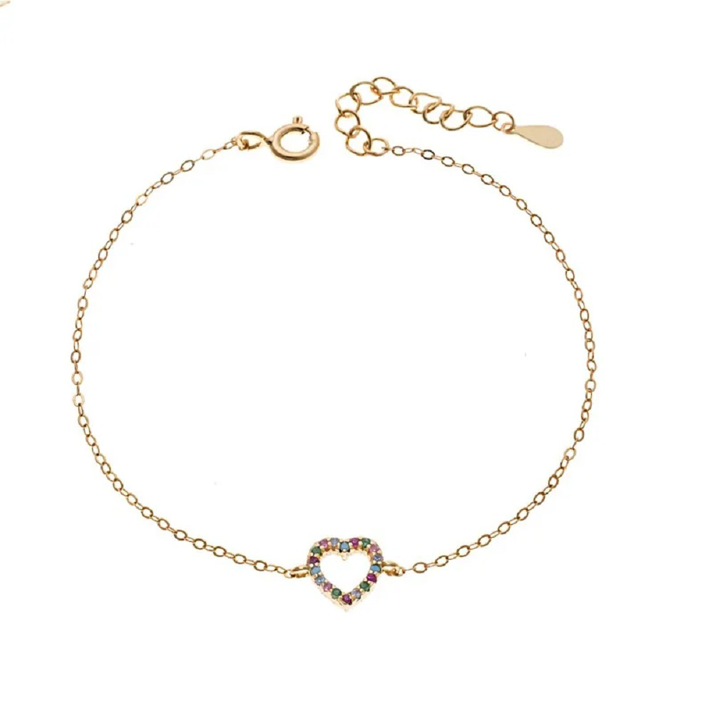 Επίχρυσο βραχιόλι ασήμι 925, καρδια 2 όψεων με άσπρα και χρωματιστά ζιργκόν