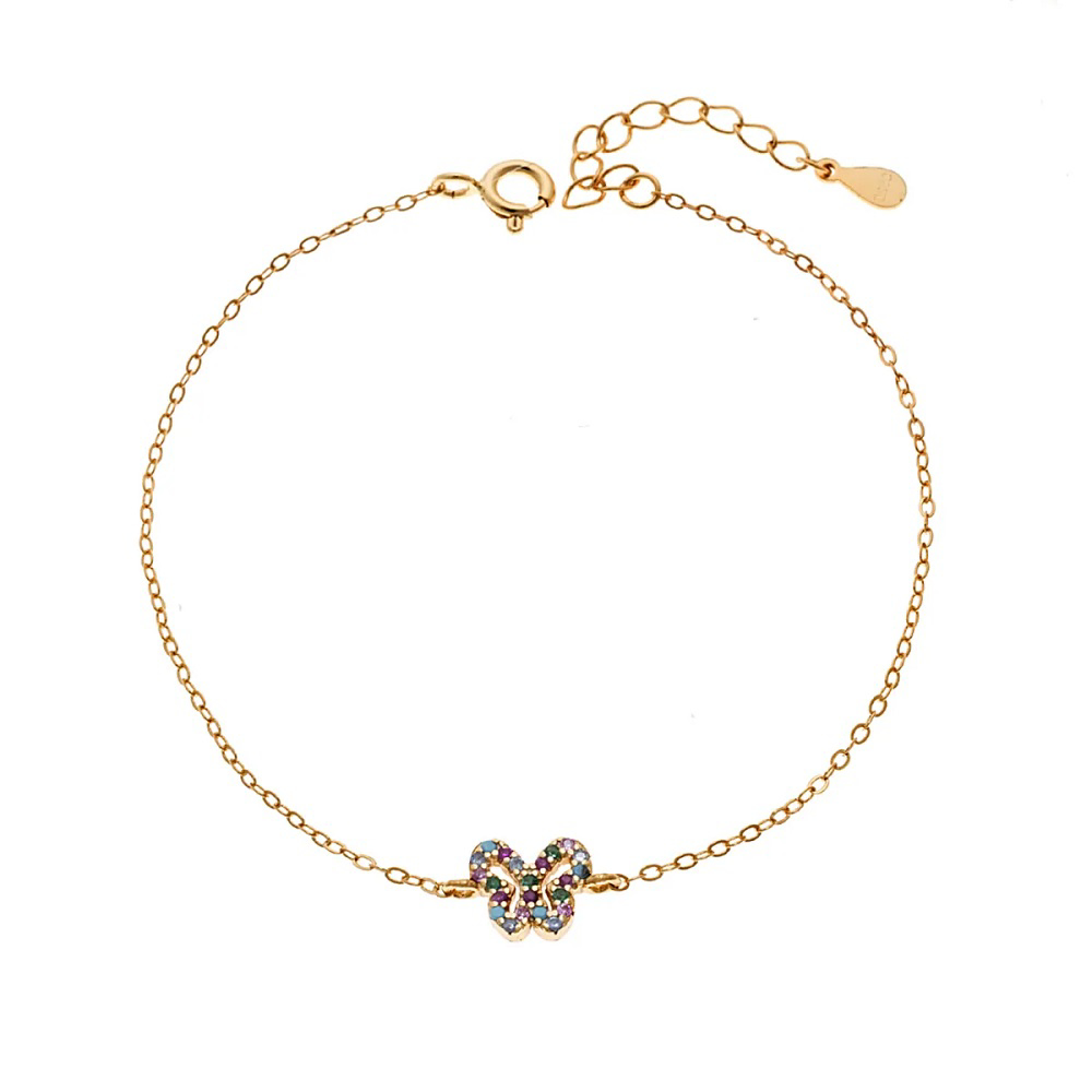 Επίχρυσο βραχιόλι ασήμι 925, πεταλούδα 2 όψεων με άσπρα και χρωματιστά ζιργκόν