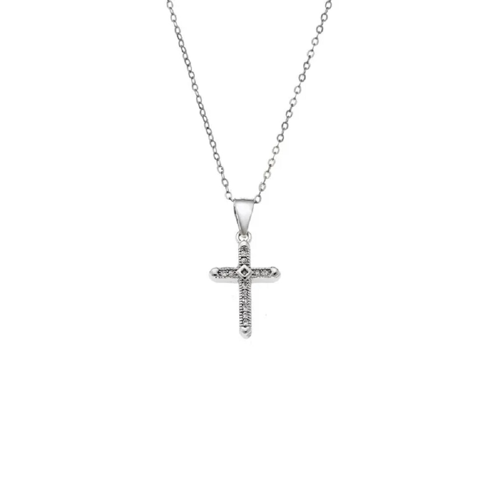 Κολιέ από ασήμι 925, σταυρός με λευκά ζιργκόν.