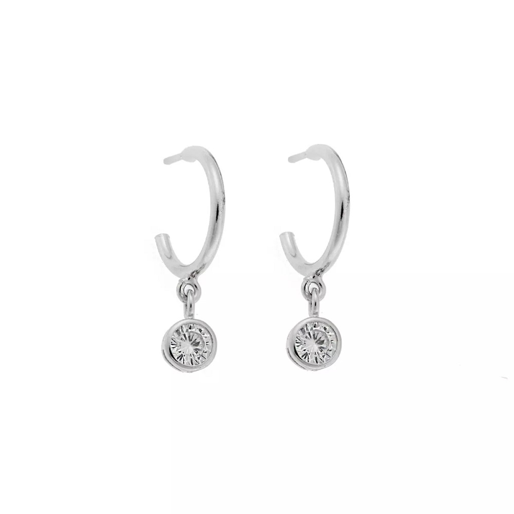 Σκουλαρίκια από ασήμι 925, μικρός κρίκος με λευκό κρεμαστό ζιργκόν.