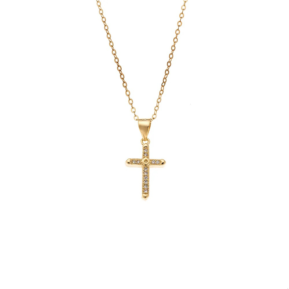 Επίχρυσο κολιέ από ασήμι 925 σταυρός με λευκά ζιργκόν μαζί με την αλυσίδα.