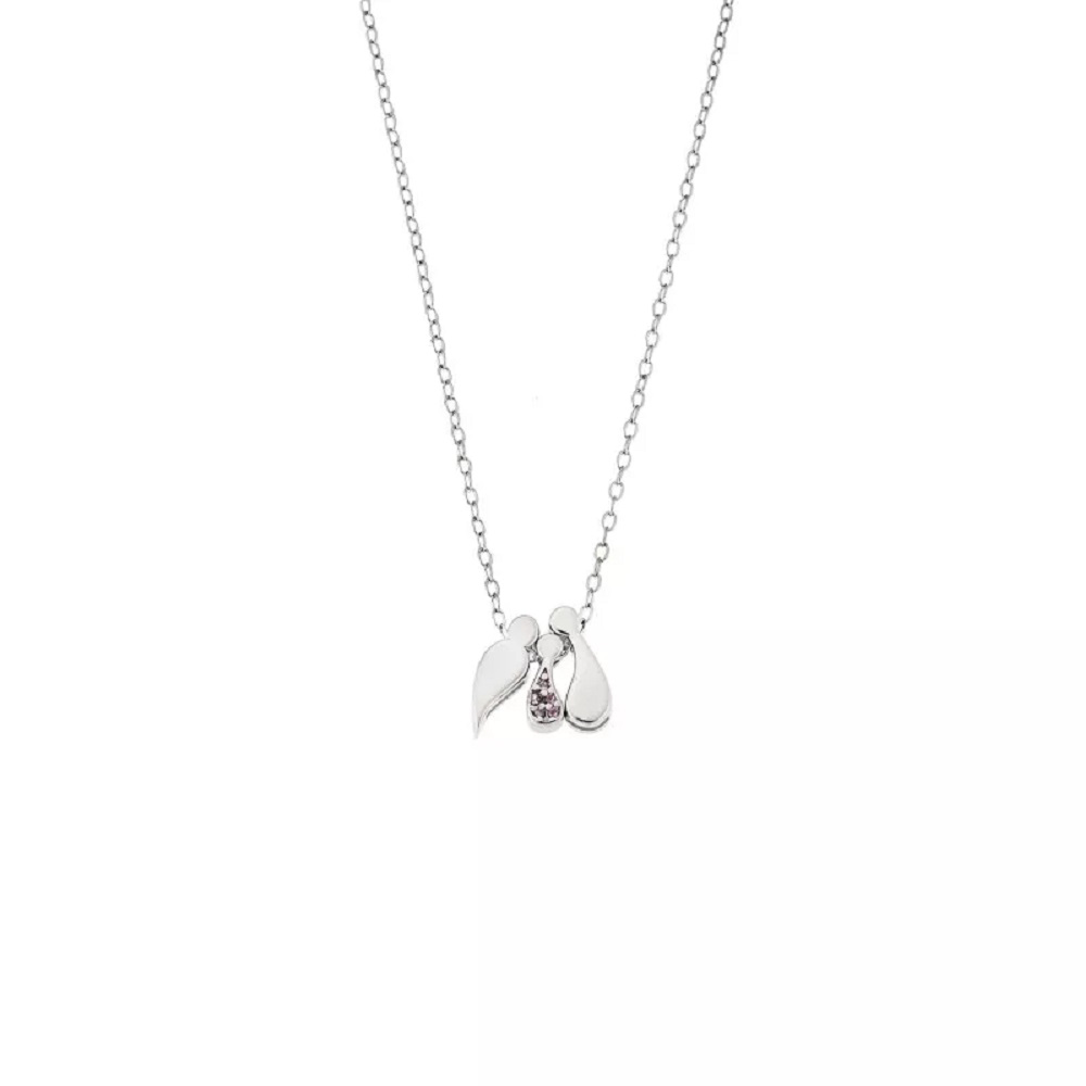 κολιέ από ασήμι 925 με οικογένεια αποτελούμενη από τη μαμά, τον μπαμπά και ένα κοριτσάκi με ροζ πέτρες . Κατόπιν επικοινωνίας μπορούμε να κατασκεύάσουμε το κολιέ σε οποιαδήποτε απόχρωση μετάλλου (λευκό, χρυσό, ροζ).