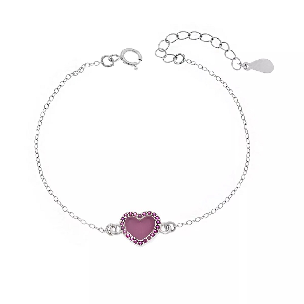 Βραχιόλι από ασήμι 925 μια κόκκινη καρδιά με σμάλτο και φουξ ζιργκον.