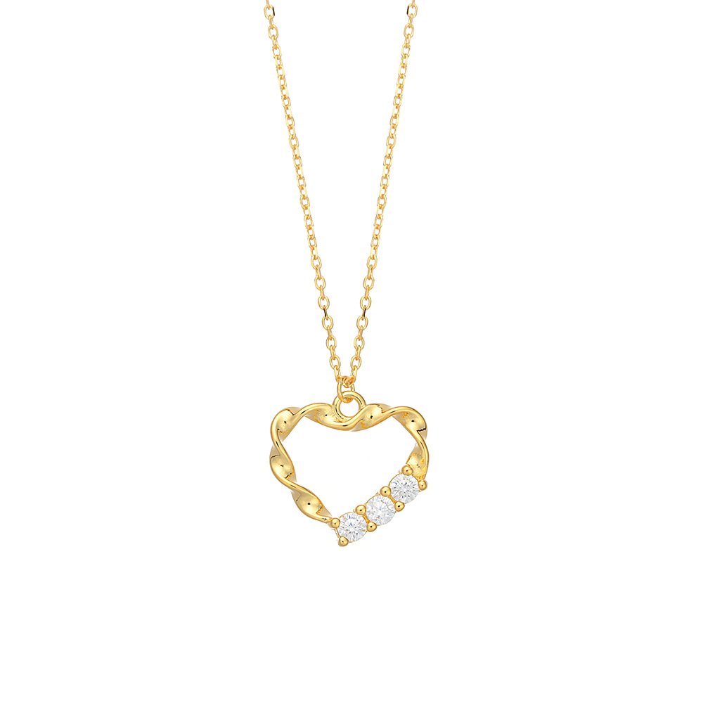 Επίχρυσο κολιέ από ασήμι 925, μια καρδιά με λευκά ζιργκόν σε αλυσίδα μήκους 40 cm με επιπλέον προέκταση 5 cm.