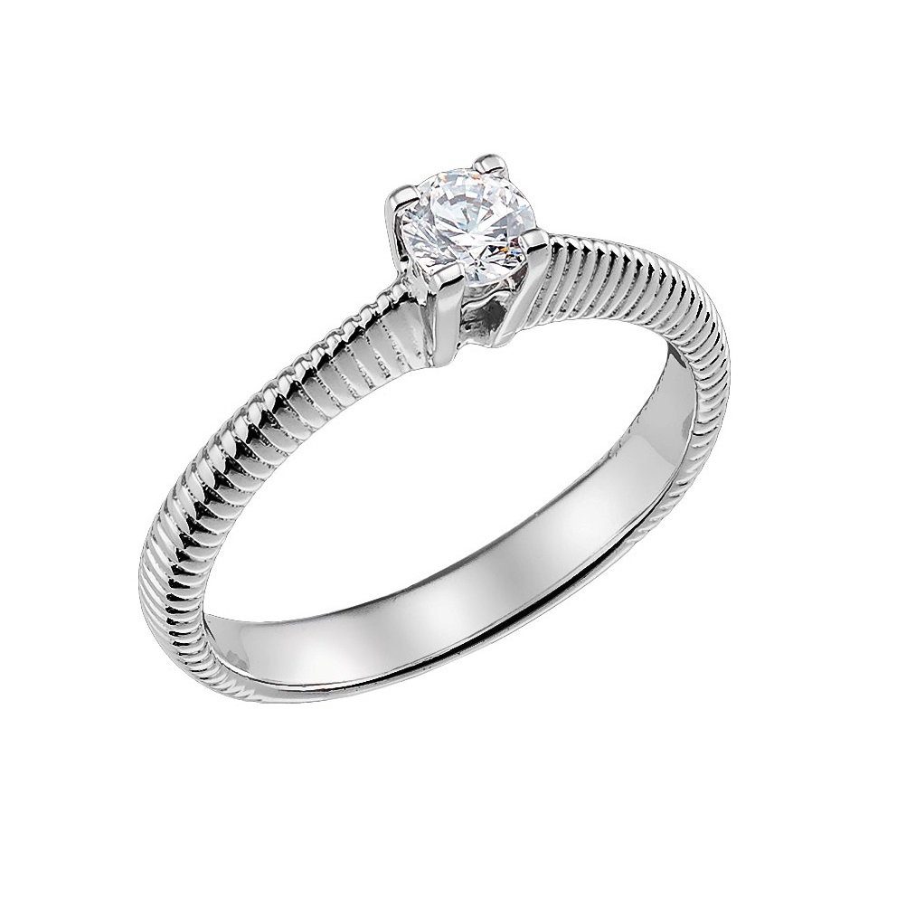 Ένα πανέμορφο μονόπετρο δαχτυλίδι σε λευκόχρυσο 18Κ, με διαμάντι υψηλών προδιαγραφών κοπής μπριγιάν βάρους 0.17ct, καθαρότητας VS και χρώματος F, δεμένο σε καστόνι με τέσσερα δόντια και έναν πολύ ιδιαίτερι γραμμωτό σκελέτό. Ένα κόσμημα υψηλής κοσμηματοποι