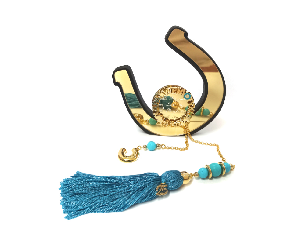 Διακοσμητικό γούρι, πέταλο με ξύλο και plexiglass.
