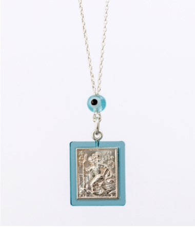 Φυλαχτό αυτοκινήτου από ασήμι 925 δύο όψεων : από τη μία με την Παναγία, από την άλλη με τον Άγιο Χριστόφορο.