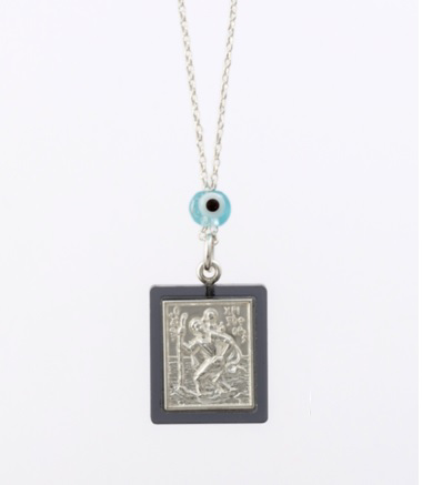 Φυλαχτό αυτοκινήτου από ασήμι 925 δύο όψεων : από τη μία με την Παναγία, από την άλλη με τον Άγιο Χριστόφορο.