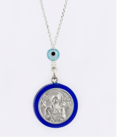 Φυλαχτό αυτοκινήτου από ασήμι 925 δύο όψεων : από τη μία με την Παναγία, από την άλλη με τον Άγιο Χριστόφορο.