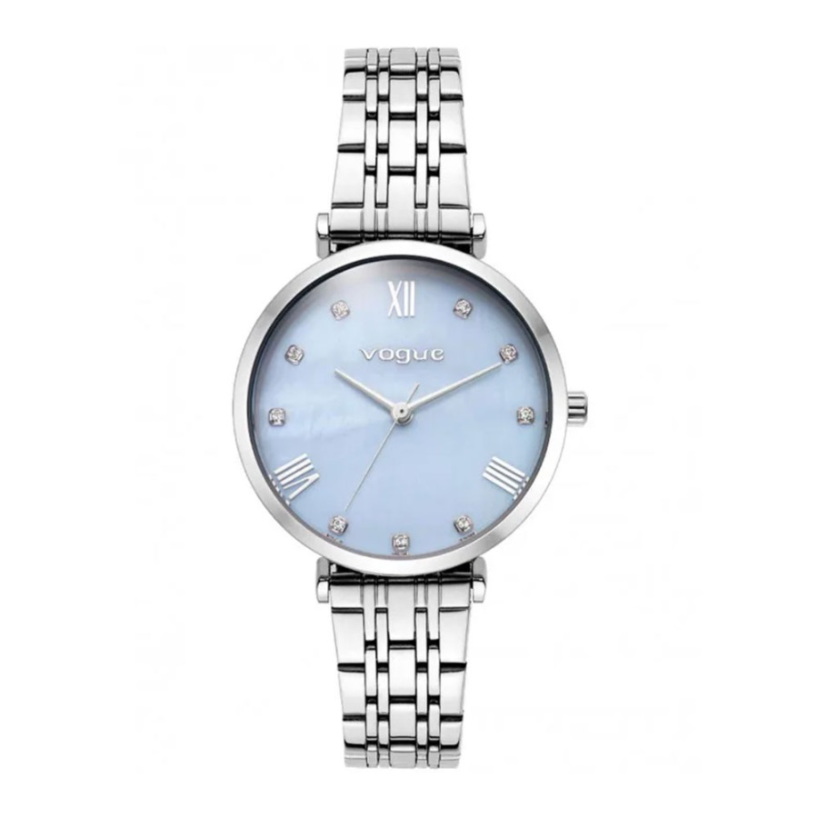 Γυναικείο ωρολόγι VOGUE από τη συλλογή NEW BLISS (κωδ. 616384), με σιέλ καντραν και λευκά ζιρκόν στις ενδείξεις της ώρας, κάσα 32 mm και μπρασελέ από ανοξείδωτο ατσάλι.Στεγανοποίηση 3 ATM.