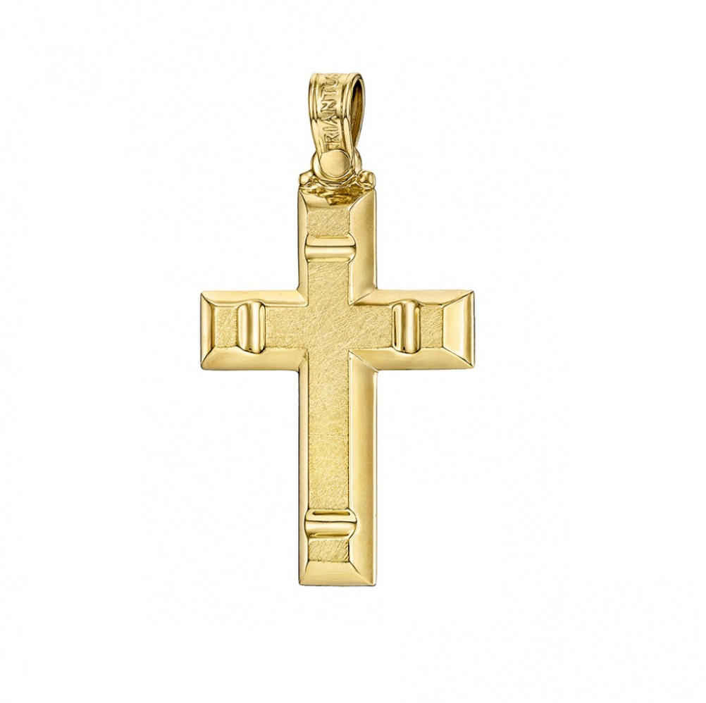 Ανδρικός χρυσός σταυρός Κ14 ΤΡΙΑΝΤΟΣ με ματ και λούστρο επεξεργασία .