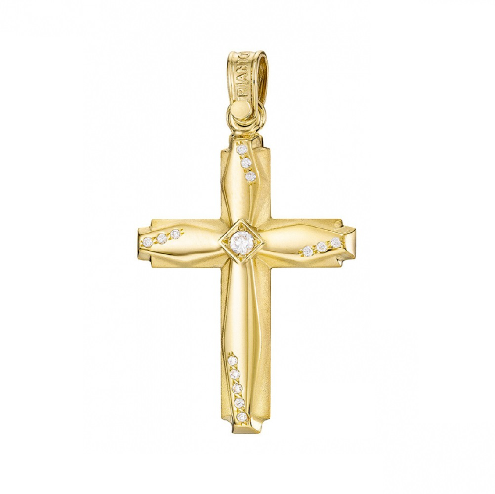 Γυναικείος χρυσός σταυρός ΤΡΙΑΝΤΟΣ Κ14 με λευκά ζιργκόν.