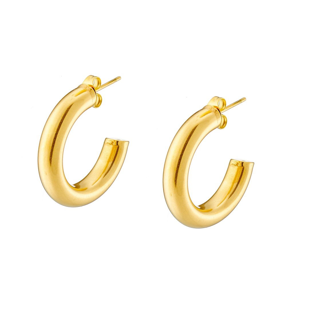 Επίχρυσα σκουλαρίκια από ανοξείδωτο ατσάλι L316. Κρίκος διαμέτρου 18 mm.