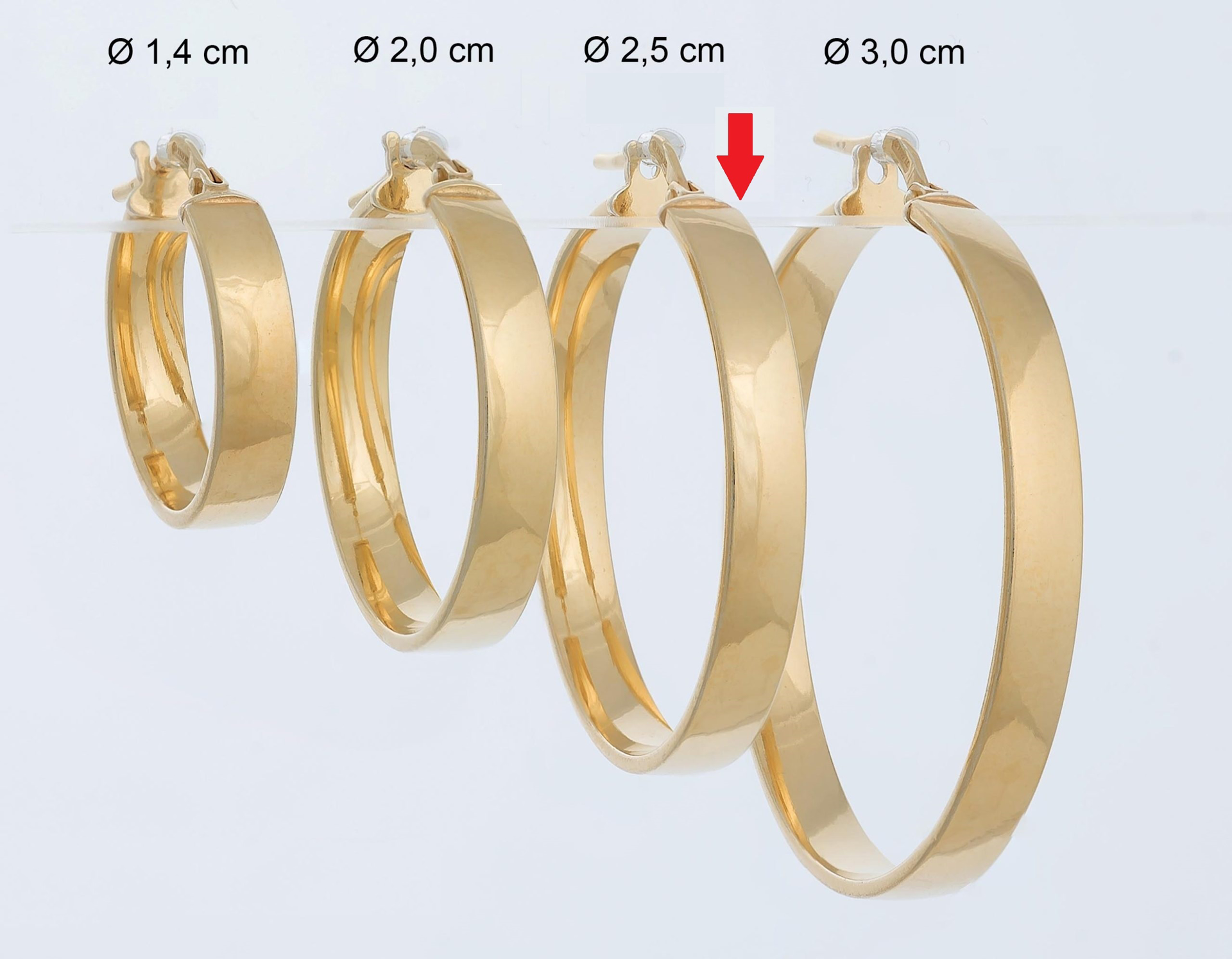 Ασημένιοι επίχρυσοι τετράγωνοι κρίκοι πάχους 4 χιλιοστών και διαμέτρου 25 mm.