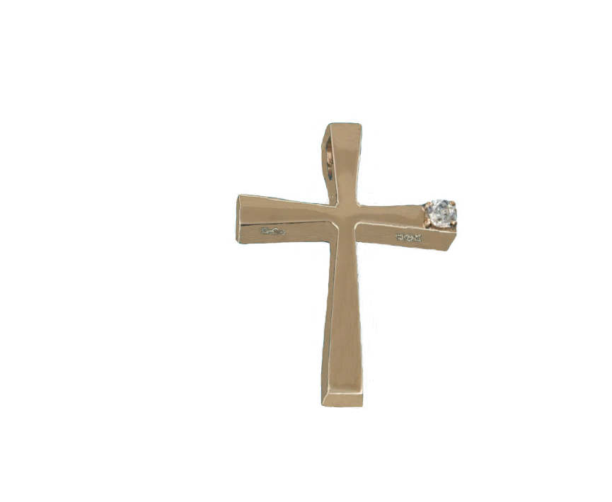Γυναικείος σταυρός ΤΡΙΑΝΤΟΣ από ροζ χρυσό Κ14 με λούστρο επεξεργασία και λευκό ζοργκόν στο δεξί άκρο.